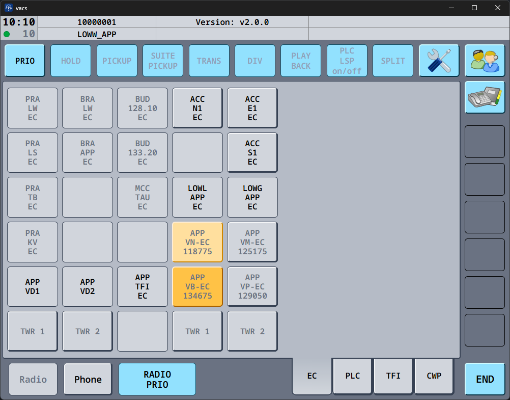 - Button referencing a station not currently online on vacs (disabled button with black text).
