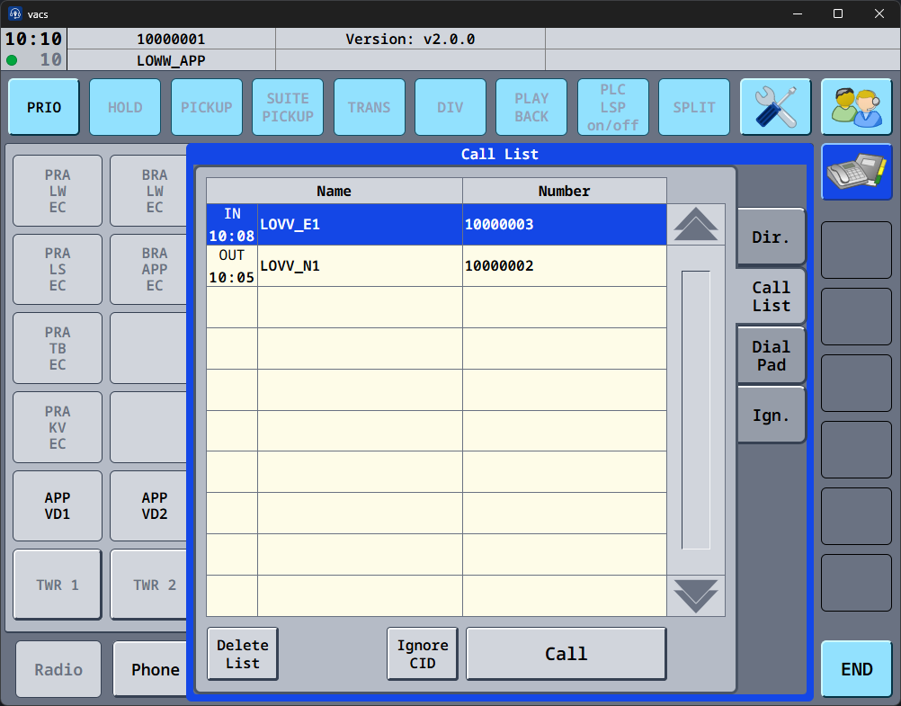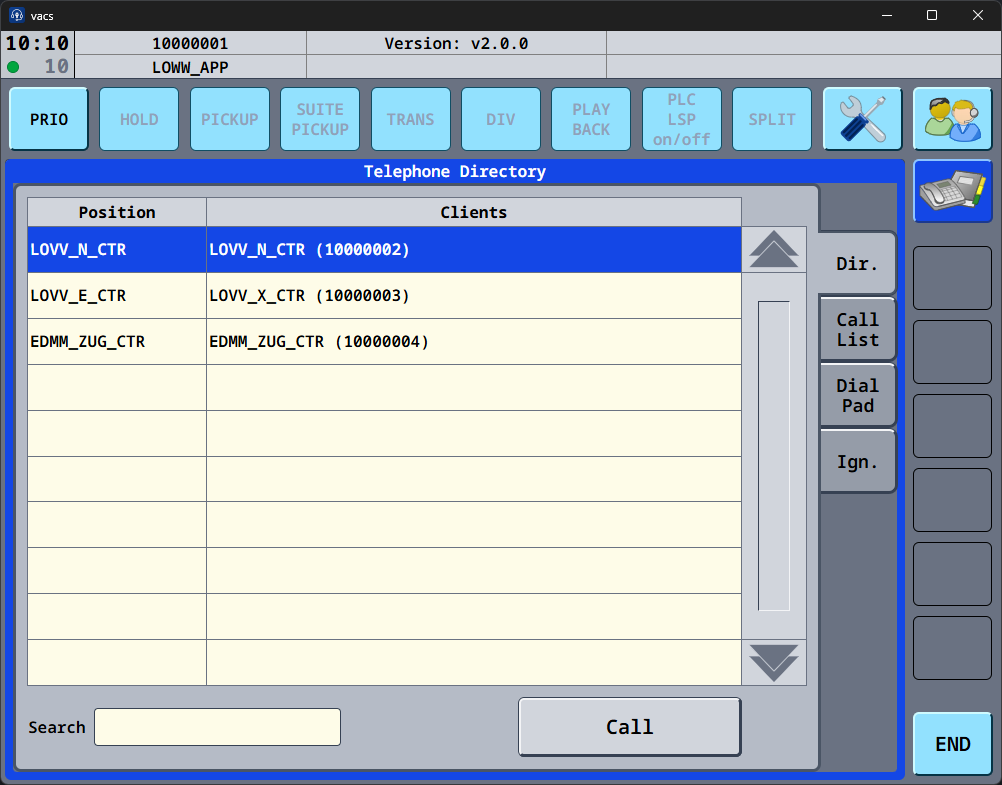 - Client – the connected station and its telephone number (= VATSIM CID)
