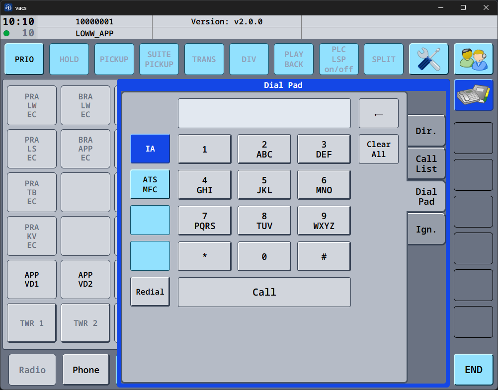 The Dial Pad alows manual dialing of telephone numbers (= VATSIM CID).
