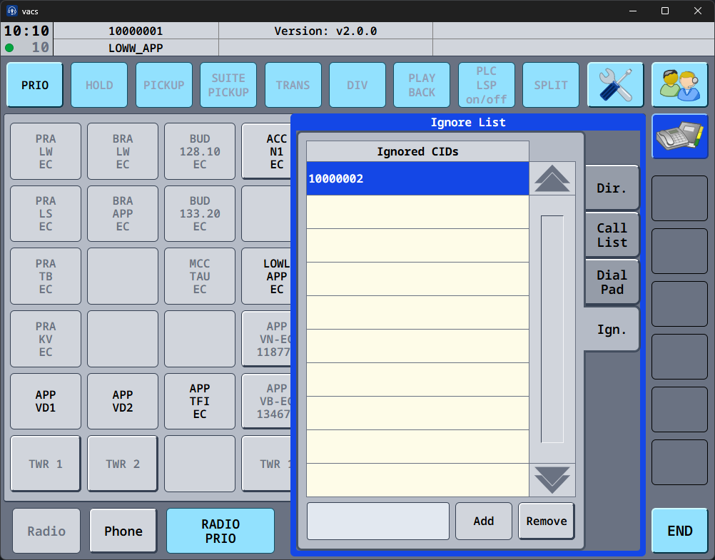 The Ignore List contains telephone numbers (= VATSIM CIDs) that should not trigger incoming calls.