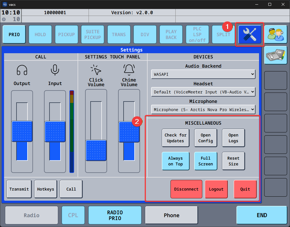 The Miscellaneous section contains general application controls and system-level functions that do not directly affect audio, calls, or transmission behavior.